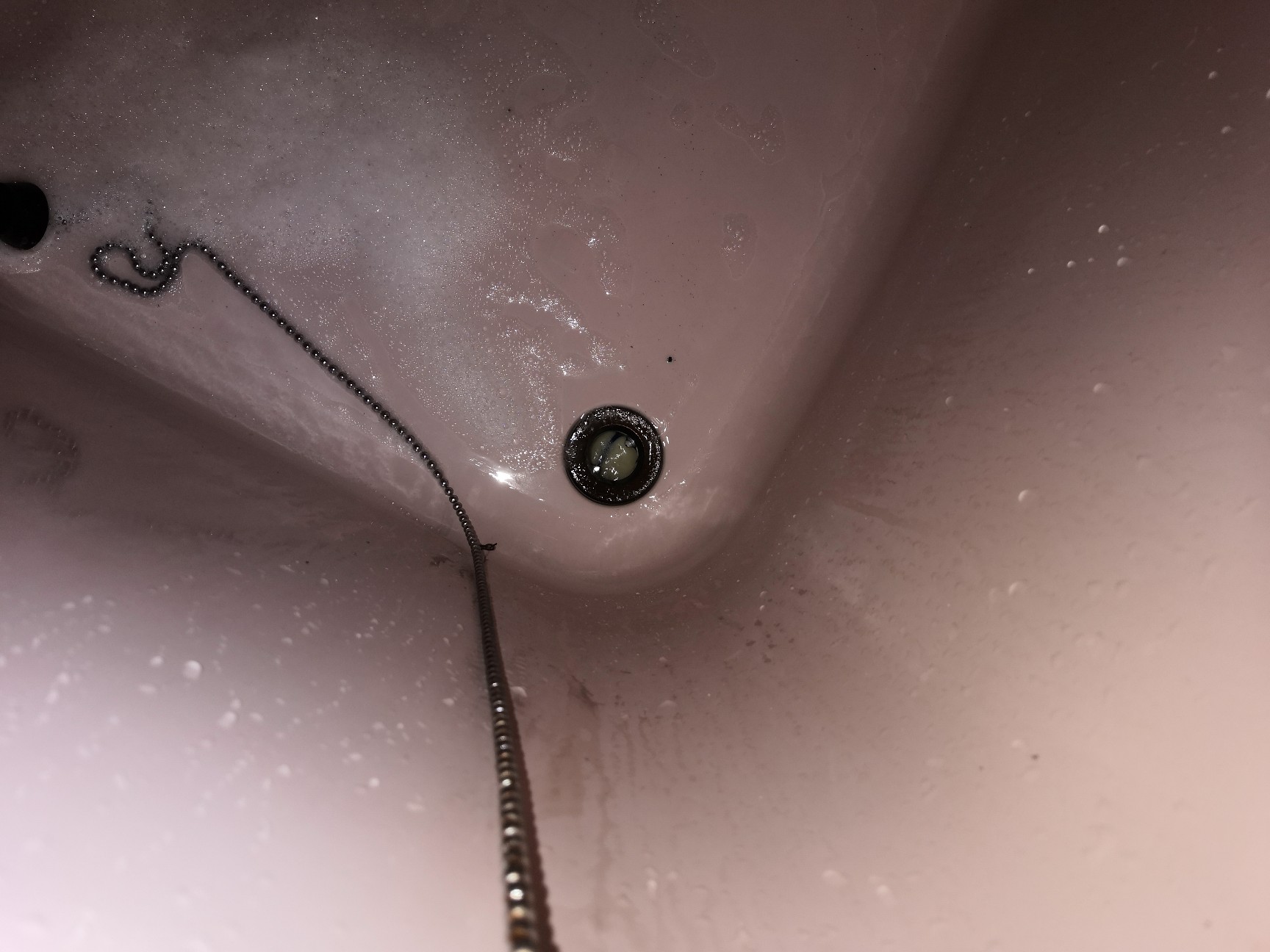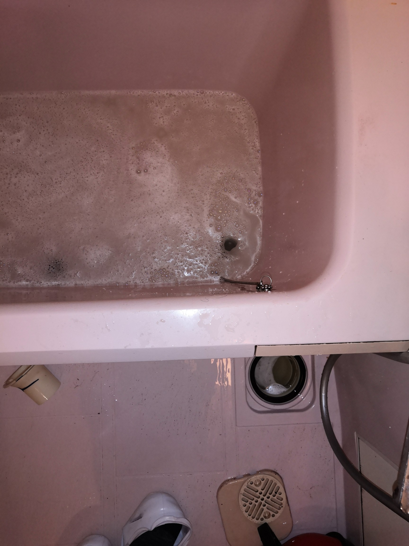 床下の排水管も確認しながら、他の水回りの排水を確認したところ、問題なく流れていて、浴室のみが詰まっている状態でした。