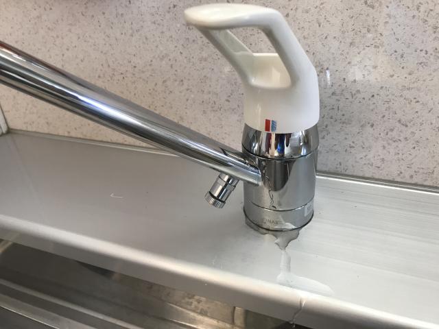 台所の蛇口を使用すると、蛇口の付け根から染み出すように水が漏れてくるとのことでした。