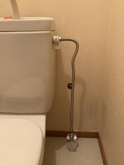 水漏れ場所はトイレの給水管で、止水栓と管の繋ぎ目から水漏れしていました。