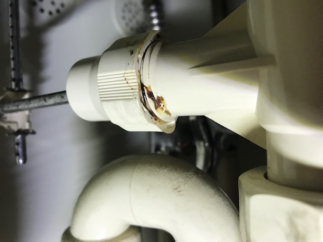 水を使用すると、洗面台の収納内の排水部品の繋ぎ目から水漏れしてくるとのことでした。