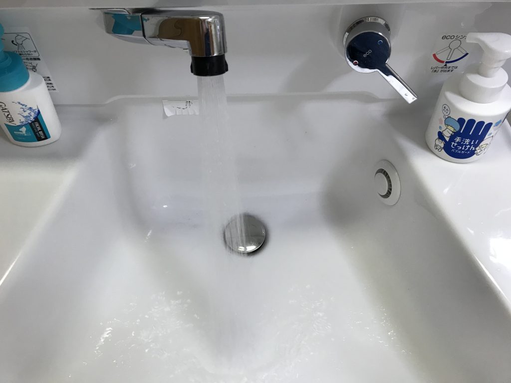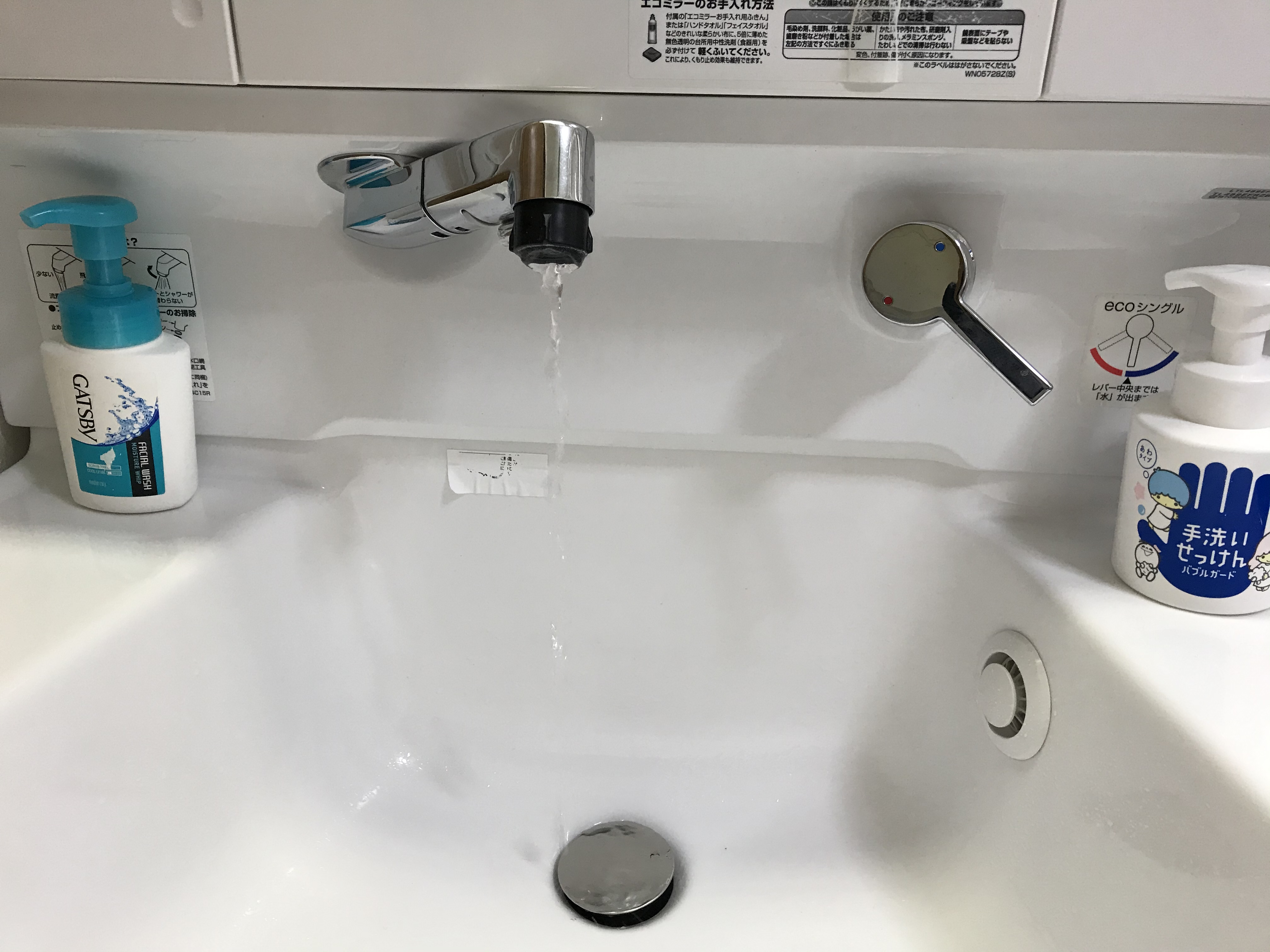 現場にて洗面の蛇口を出してみると、もう数滴しか出ない状態でした。