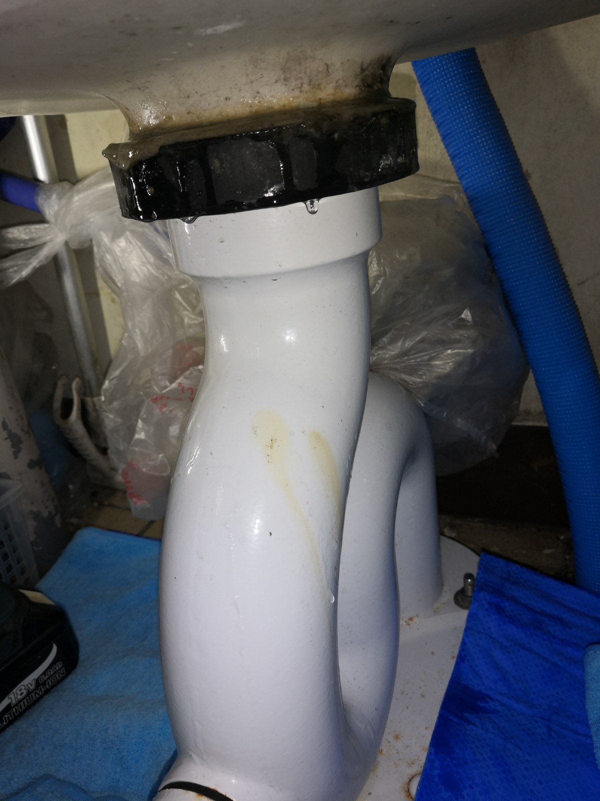 この流しの排水部分から水が漏れてくるみたいで、確認してみると。。。。。。