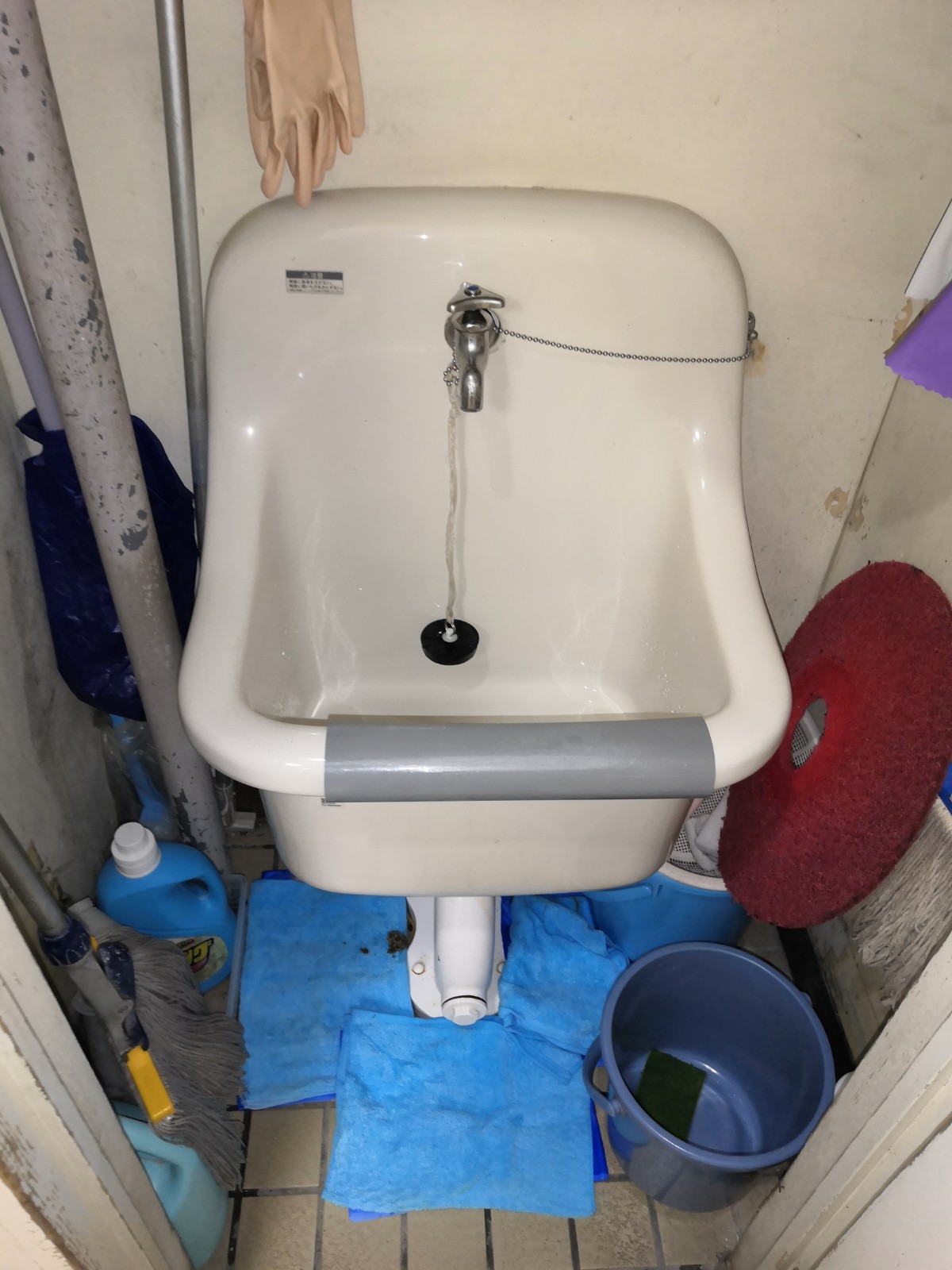 本日は、掃除用流し(SK)から水漏れがしているから、見に来てほしいとお電話いただき、出動しました(‘◇’)ゞ