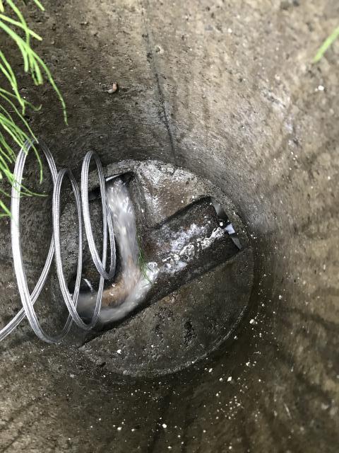 台所ホース付近では詰まり等はなかったため、外のマンホールから高圧洗浄機をかけて洗浄していきました。