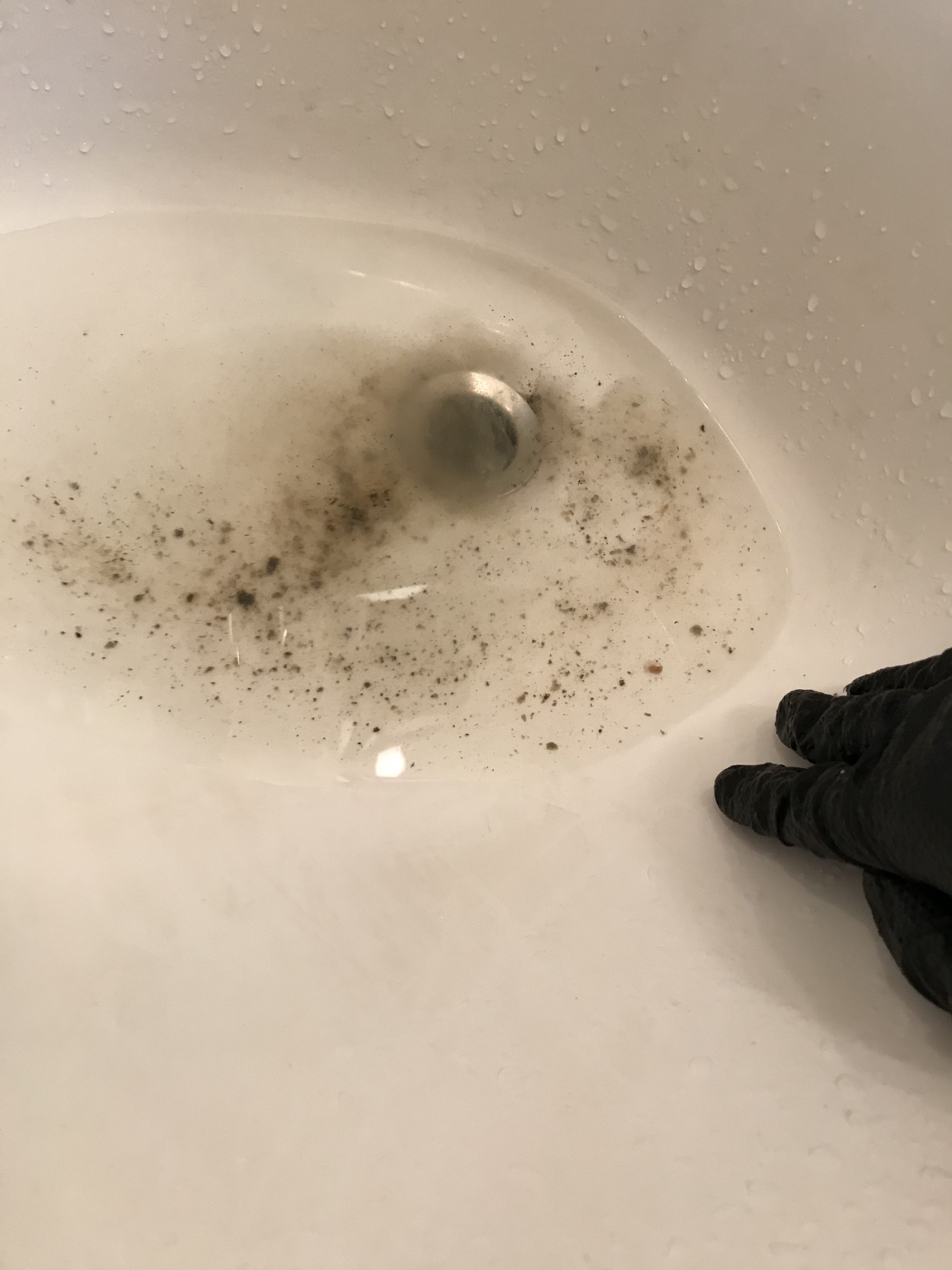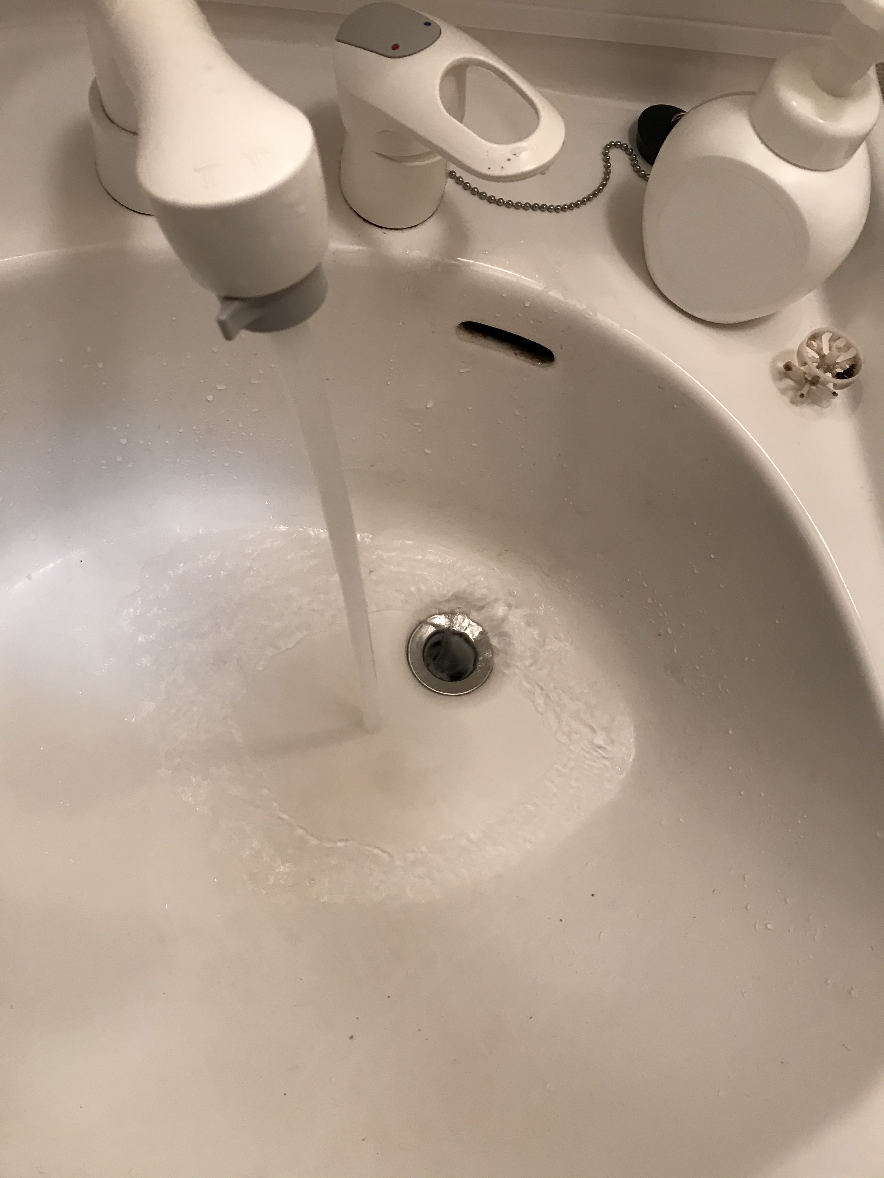 状況を拝見すると、洗面所の水を出すとすぐに溢れてきて水が一切引かない状態でした。