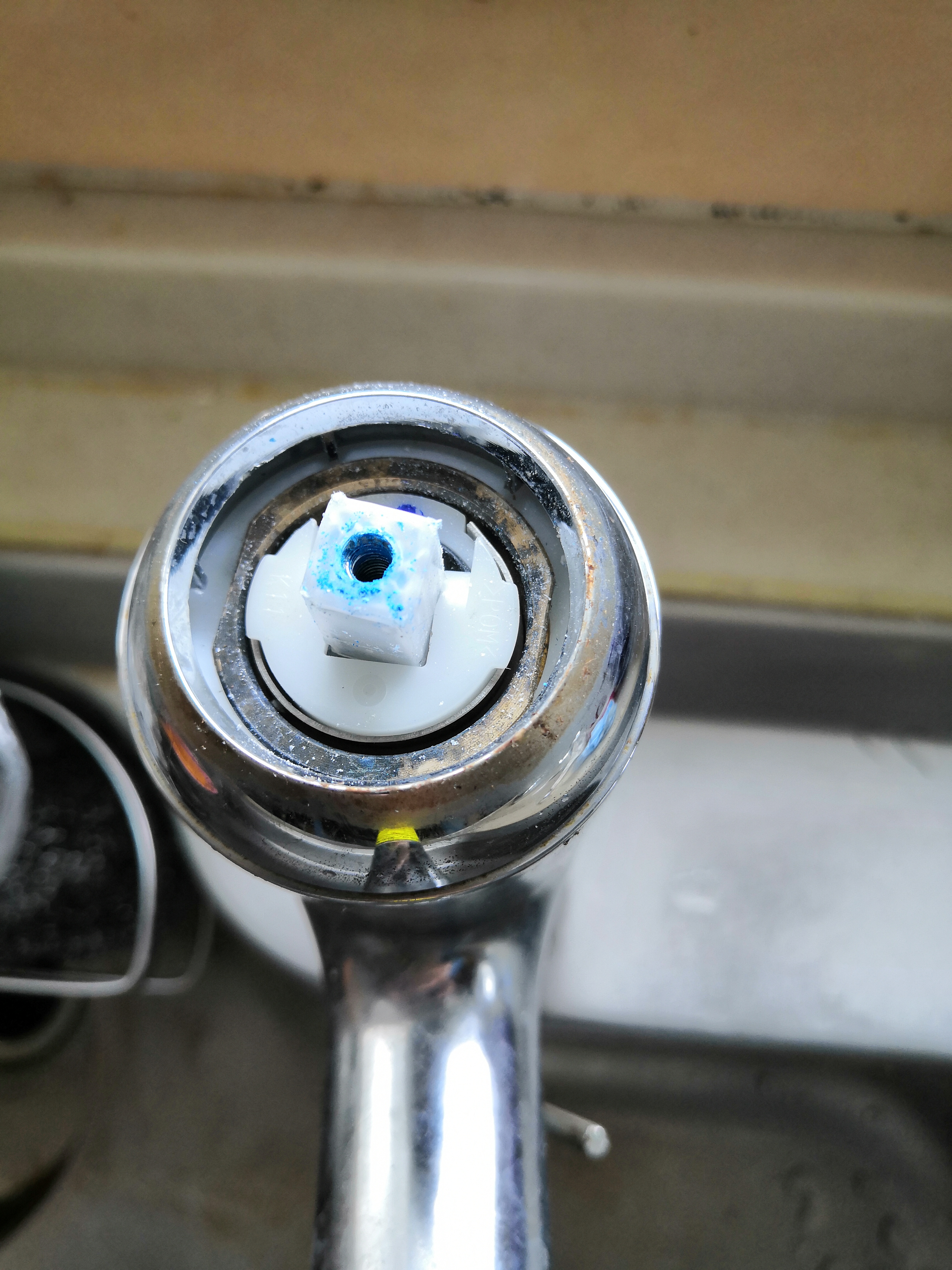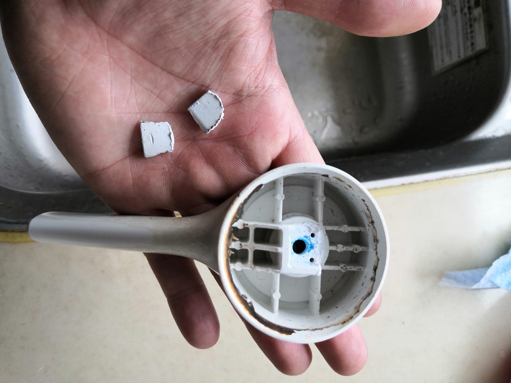 レバーを触ってみると、クルクル360度回ってしまう状態でした。。。レバー部分の分解したところ、本体との接続部分が折れてしまっていました( ノД`)