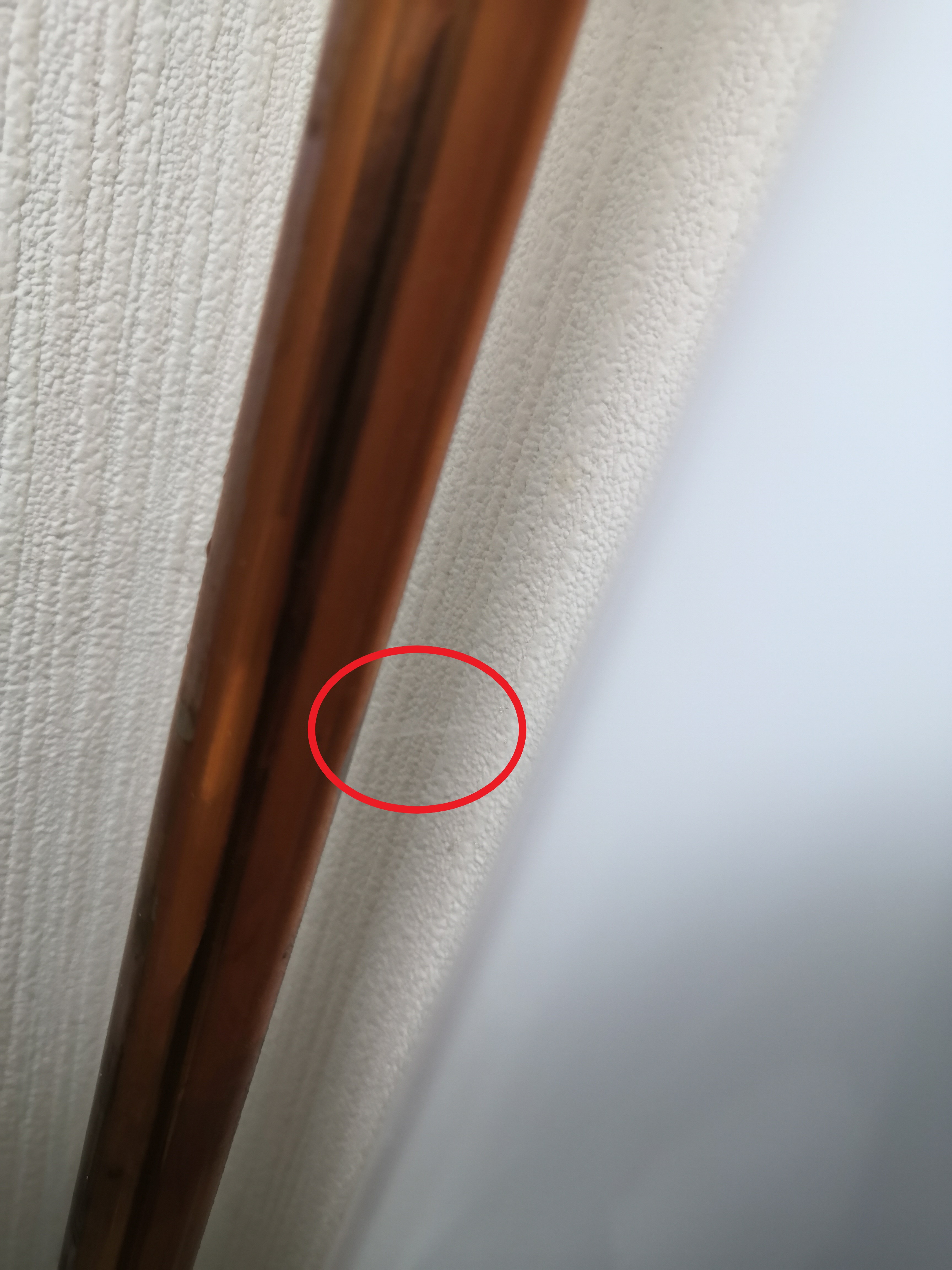 こちらのお客様は6年ほど前に家のリフォームしており、その際に水道管も引き直したようなのですが、当初のリフォーム会社の見積もりでは水道管を架橋ポリ管で引き直す内容で契約したようです。ところが、数か月前に今回の漏水と近い場所で同じようにピンホールがあり、その際に銅管で施工されていることが発覚したようですね。