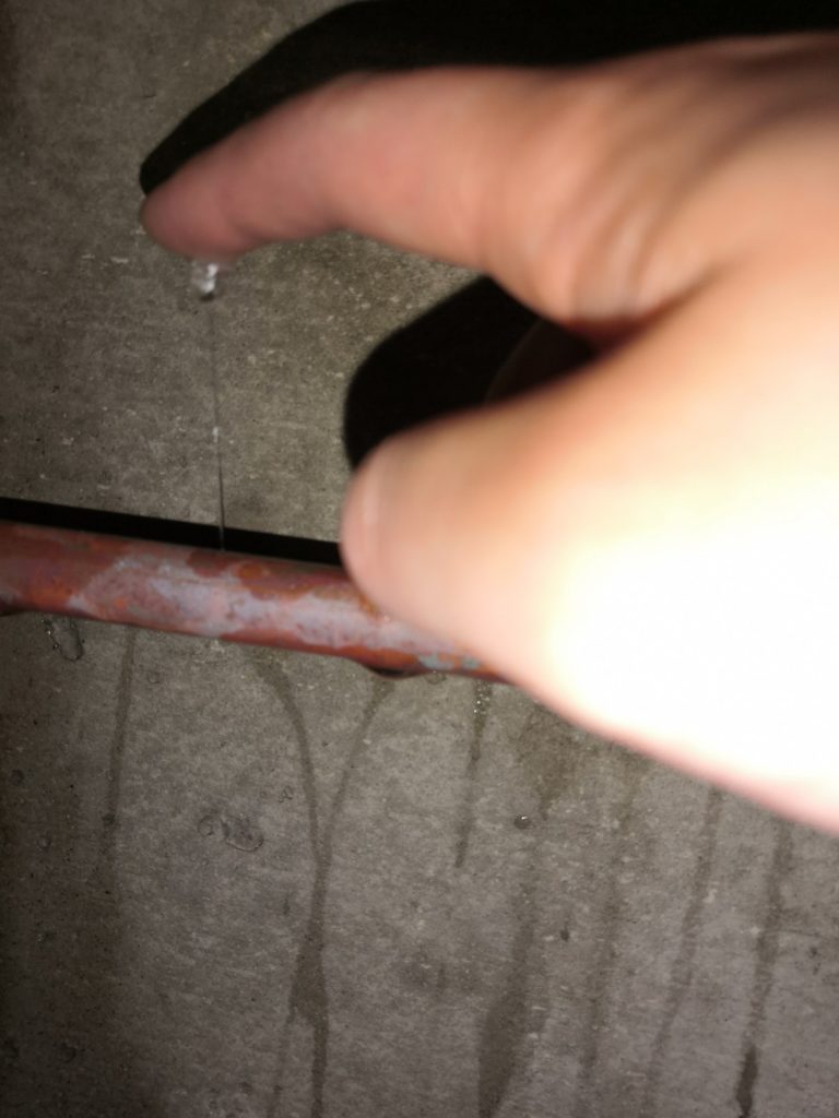 水漏れしている、部分を切断し、新しい銅管配管をつないでいきます♪