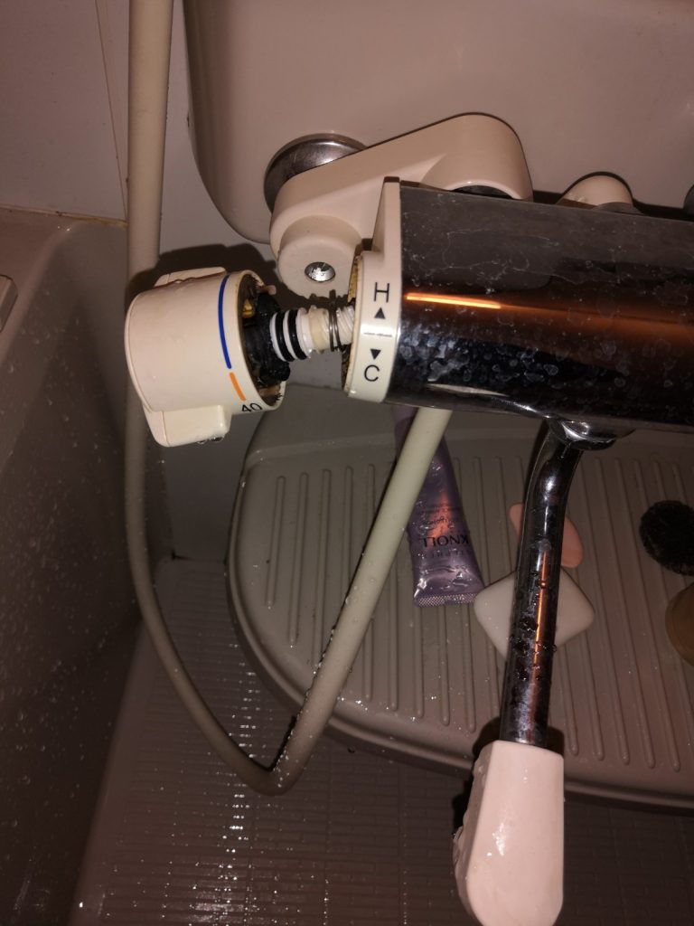 今年の1月から家を空けていたみたいで、水落としはしたのですが落とし切れていなかった為、水栓のサーモ部分が凍結で破裂してしまっていました( ノД`)