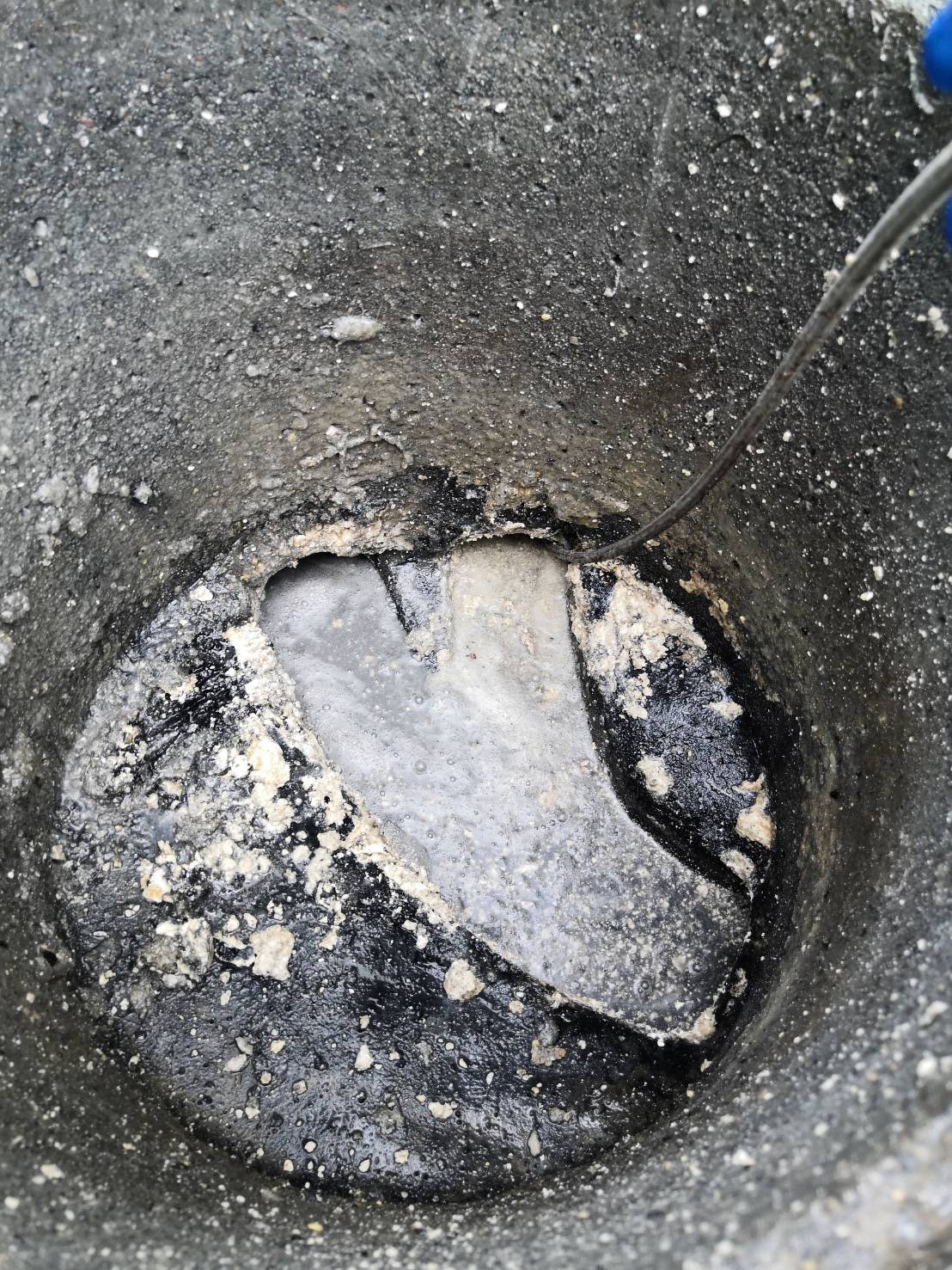 排水管が詰まった原因は台所から流す油が経年で詰まってしまったようで、高圧洗浄で時間をかけて全ての油を除去しました。