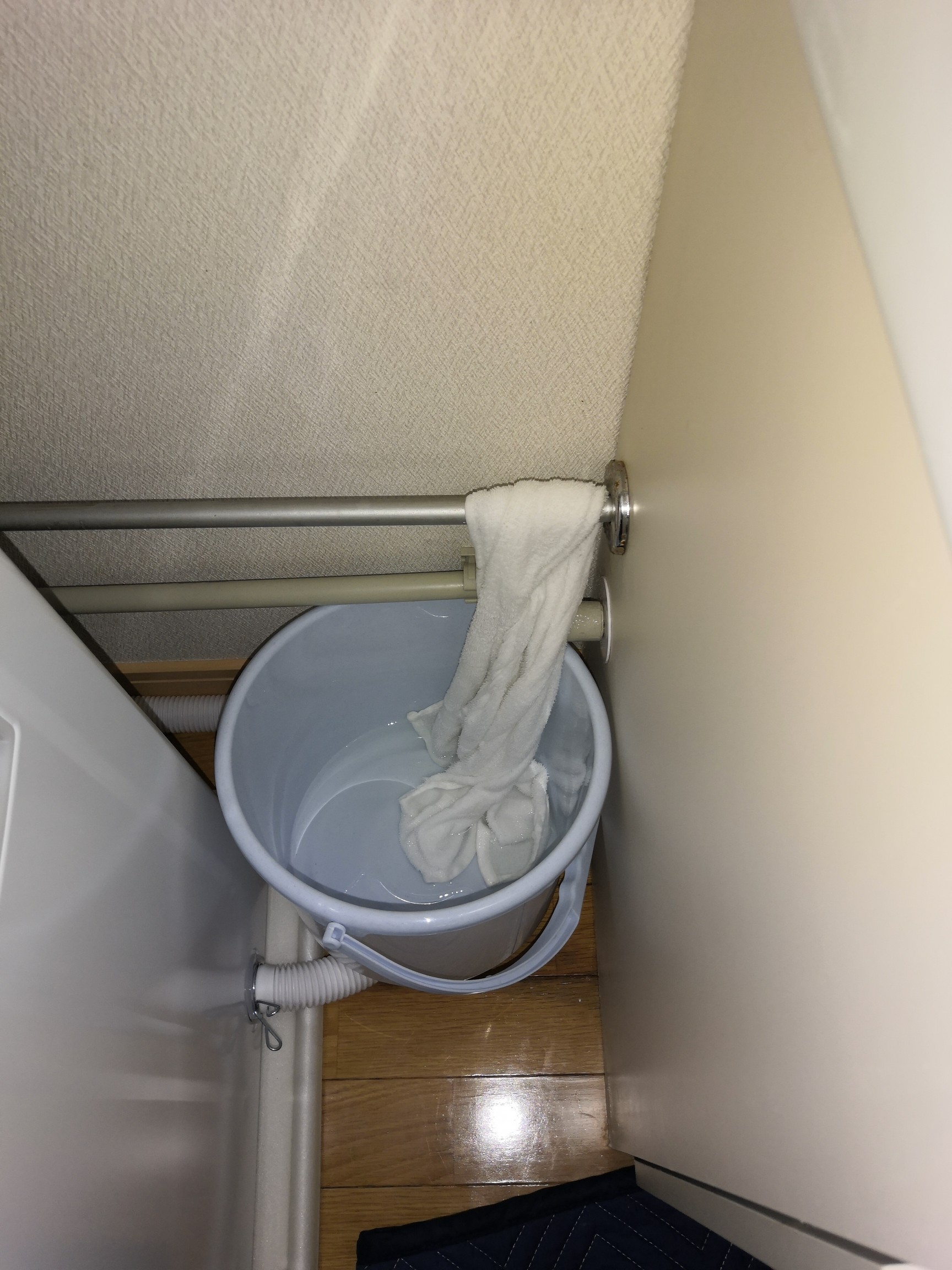 調査してみると、お客様自身での応急処置が痕跡が(/_;)とても上手に水をバケツの中へ誘導できていました。w