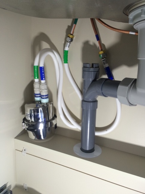 本日は、新居マンションに引っ越してキッチン下に浄水器を取り付ける作業に行きました。
