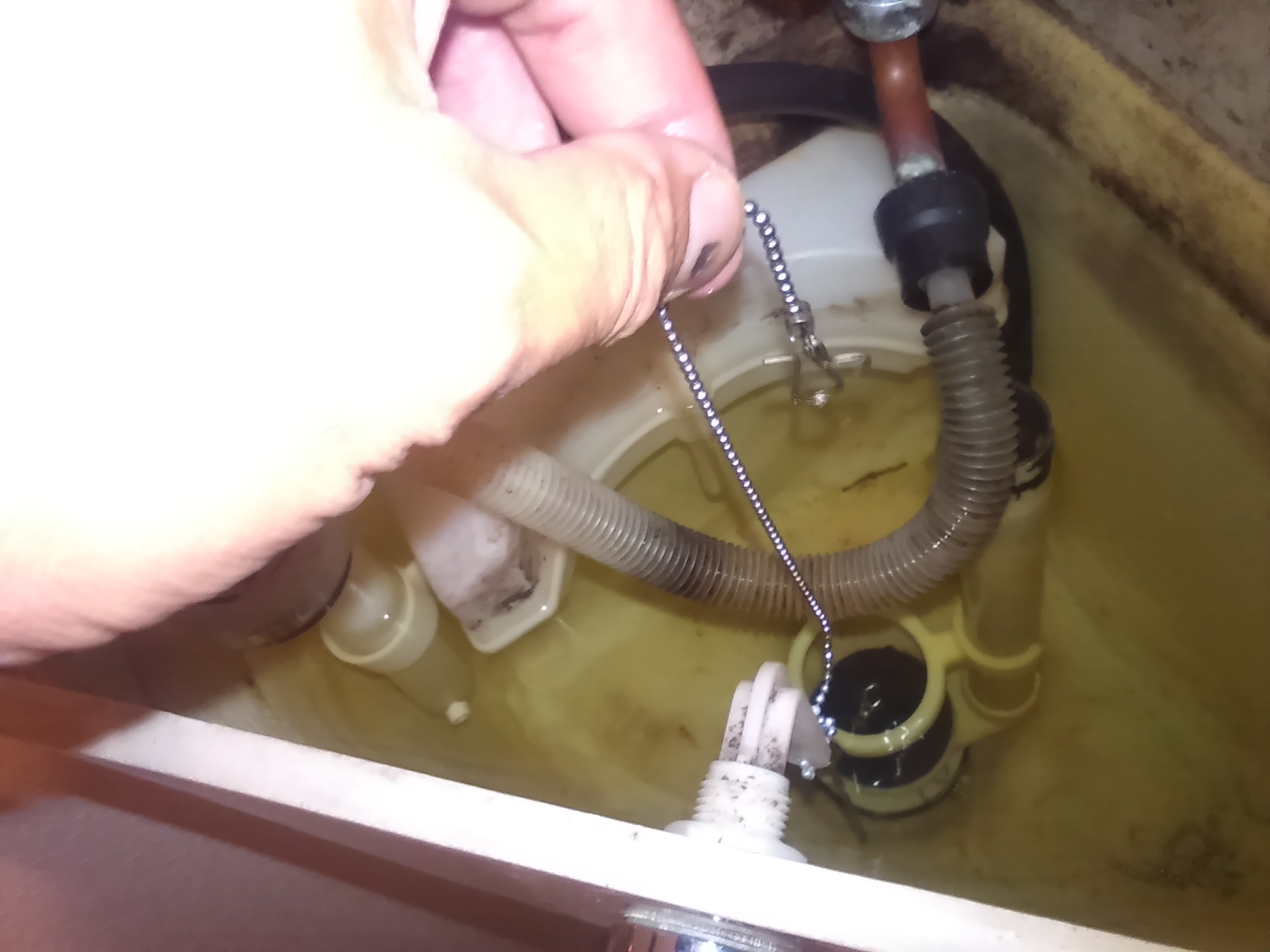 本日はトイレの水が流れないとの事で訪問させて頂きました、早速トイレのロータンクの中を覗いてみると排水弁とレバーを繋いでいる鎖が切れていたので対処としては排水弁と鎖の交換になりました、付いている排水弁と鎖を外し新しい物を付けて鎖の長さを調節して完了です。最後に水がちゃんと流れるかのテストをして作業の方は終了です。
