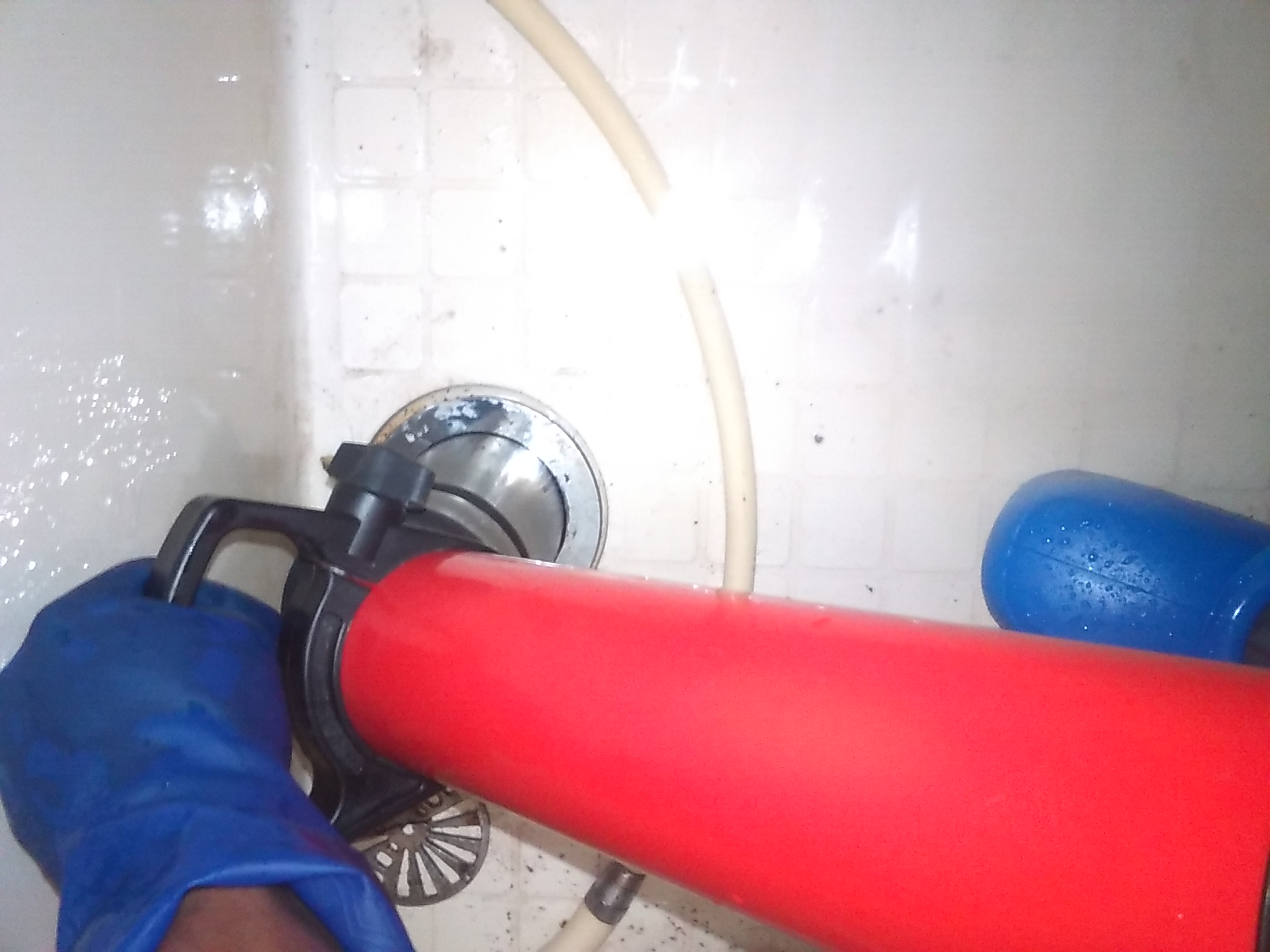 本日は浴室排水詰まりとのことで入居者様の元へ訪問いたしました、浴室を見てみると髪の毛受けのキャップがあったのですがはずしても流れが悪かったので排水管途中で詰まっているようです。作業としてはどれほど詰まっているのかわからないので簡易的にローポンプ作業から始める事ににしました、数回ローポンプ作業をすると排水管から詰まりが抜ける音がし試しに水を流してみると詰まりが解消されていました。入居者様もお風呂が使えず大変困っていたためとても喜ばれていました(^O^)/