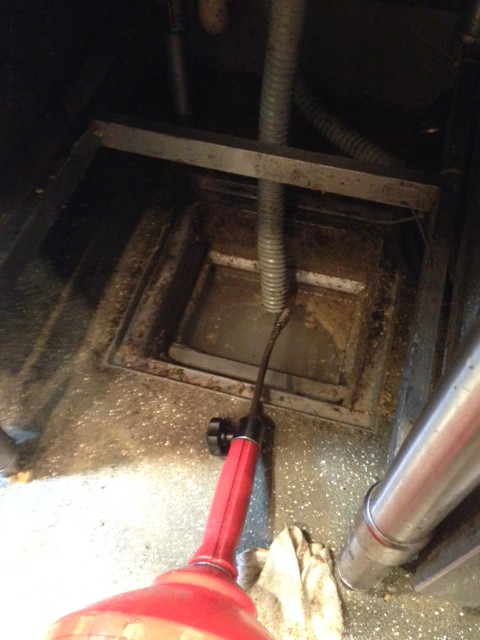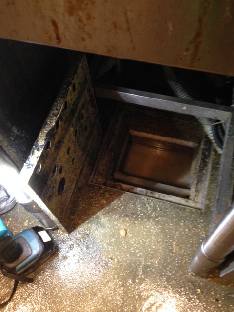 本日は、某カフェ様からの入電。排水が詰まり溢れてくるので見てほしいとの依頼でした。早速訪問し確認してみると厨房のグリストラップ部にシンクの排水を直接入れていて流していて洗い物が全部そこに流れている状態でした。”(-“”-)” グリストラップ自体が詰まっているのでそこを直さないとダメですね。お客様に修理許可を頂き早速作業開始。トーラーと言うワイヤーを入れてい詰まり除去をやりました。無事つまりも直り作業完了です。