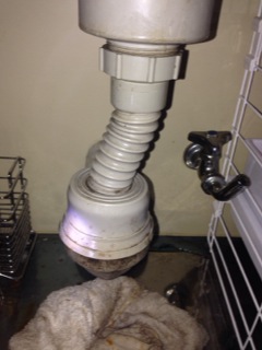 こちらのマンションは築30年以上のベテラン建築物、排水が詰まって流れが悪くなり連結部分から溢れだしていました。