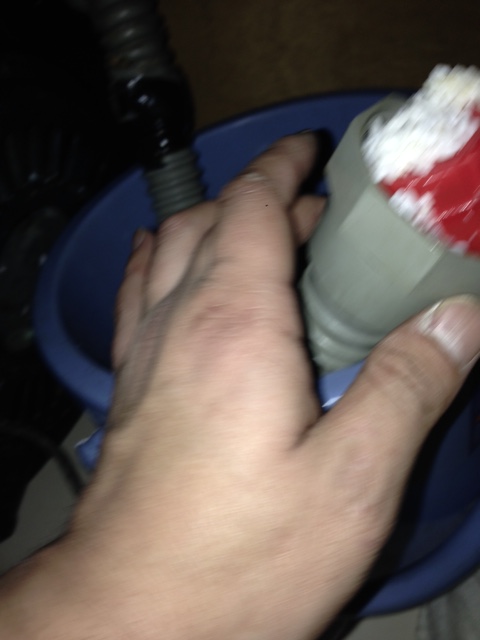 するとおそらくマヨネーズのフタとも思えるものが出てきて、ホースの間にピッタリと挟まっていました。