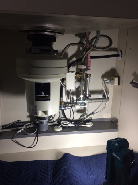 本日は、10年以上経っているディスポーザーが壊れ、ほとんど使用してないので機械を外して普通の排水に戻してほしいとの依頼でした。早速、訪問し確認して工事内容や復旧費用の了解を頂き作業をしていきました(^^)/ ディスポーザーの取り外しのみは、珍しく大体、壊れたら新しい機械に取り替えるの方が多いのですが、ほとんど使用していないし壊れている物をそのままにしておくのも気持ちが悪いので外す事になったようです。台所の排水トラップや排水管などを新しくして作業完了しました。