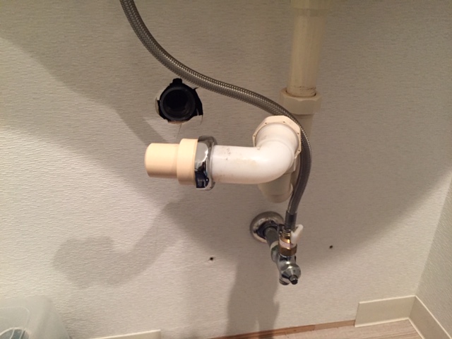 なので、壁からの配管を延長し、さらに排水接続部材を使用して水漏れの危険を抑えることにしました。