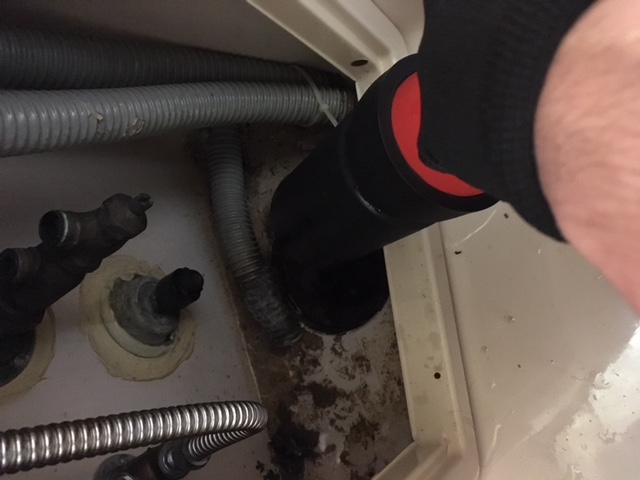 本日は三点ユニットの排水が詰まって溢れてくるとの事でご依頼頂きました、お伺いさせて頂くと洗面台の下に排水があり浴槽と洗い場と洗面台の排水を集めて一つの排水管に流しておりそこが詰まっていて溢れてくる状態でした。作業としては排水口にある汚れを除去して高圧ポンプをかける形となりました。高圧ポンプを何回かかけると水が流れる音がして詰まりの原因は解消です、念のため最後に薬品を入れて配管内をある程度キレイにすれば完了です。