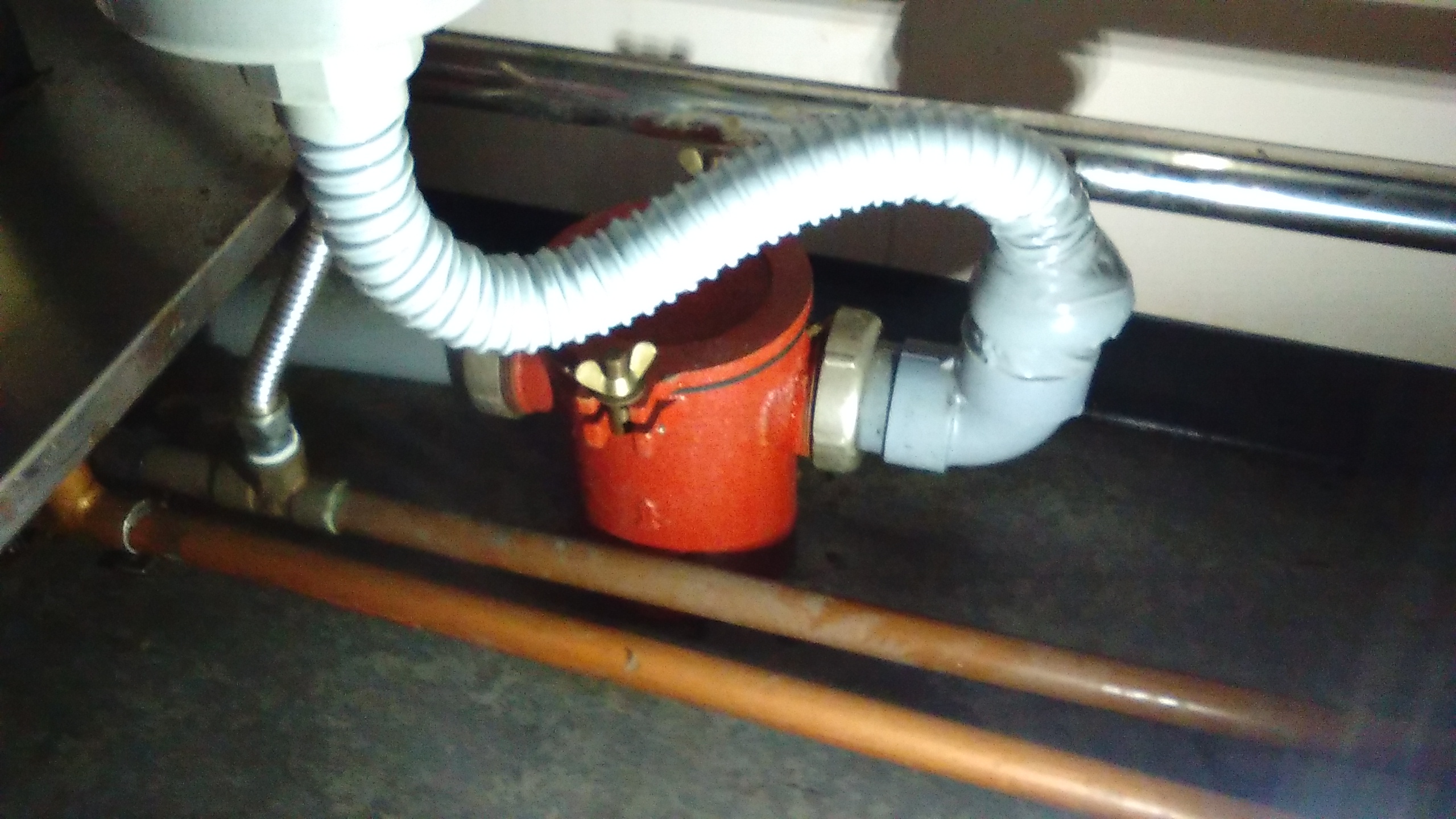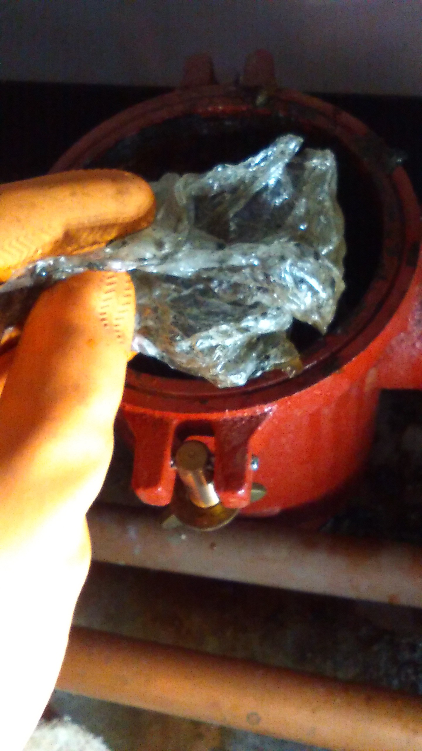 本日は、飲食店の排水詰まり改善の依頼がありお伺い致しました。厨房のシンク排水が2時間ぐらいかけてやっと流れるとのことで、早速シンク下に潜って点検。点検したところ排水管の途中に飲食店に設置が義務付けられているグリストラップがあります。飲食店さんは油脂や残飯を排水に流すことが多いため、排水管に直接流さないように、せき止める役目をするのがグリストラップなのです。蓋を開けると、ビニールが詰まっていました。何故こんな物が?と思いつつ取り除きグリストラップを掃除。排水のホースからも水漏れしていたため新しい物に交換しました。日ごろの点検・掃除が必要なグリストラップですがお客様では中々掃除が出来ないようで当社にも良くご依頼があります。当社は一般家庭から飲食店まで対応するスーパー集団!と言ったところでしょうか(笑)