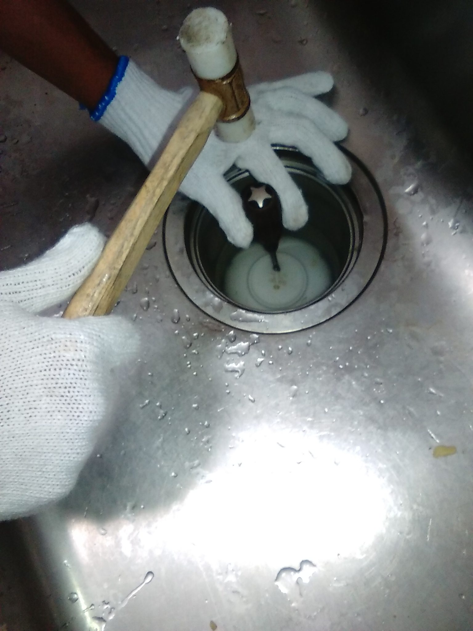 札幌市中央区 台所排水に小皿が挟まった