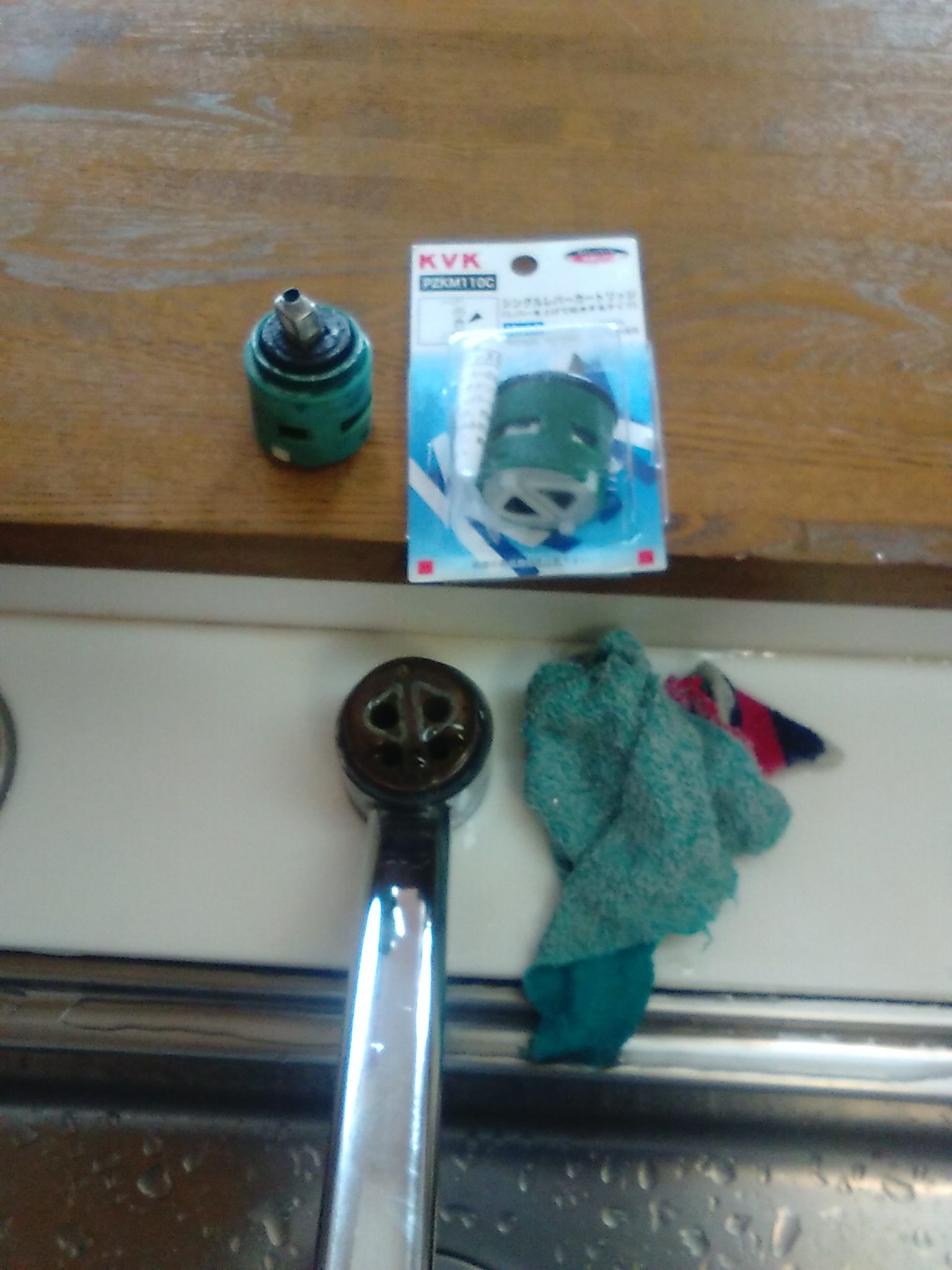 本日は、台所蛇口の水が止まらないとの依頼があり出動しました。レバーを閉めても蛇口からポタポタが水が止まらなくなる症状です。皆さんも良くある故障ではないでしょうか?最近の混合水栓はパッキンではなくカートリッジという部品を交換しないと治りません。早速お客様に金額を提示して作業を開始です!比較的古い蛇口のため各箇所が水垢などで固着して交換自体は大変でしたが無事に水も止まるようになりお客様も喜んでいました。