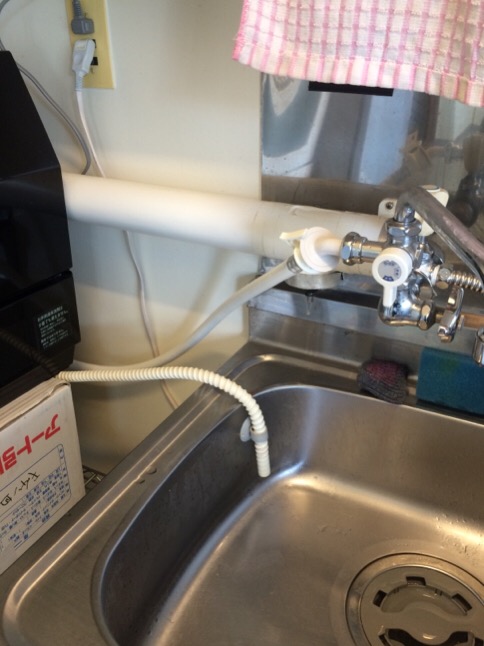 交換致しました。2つ目が洗濯機の排水ですが、排水口が無いタイプで今まで浴室に排水していたらしく排水口を取り付けてほしいとの希望でしたので合う物を用意し施工致しました。3つ目が卓上型食洗器の取付ですが分岐を取付て完了です。