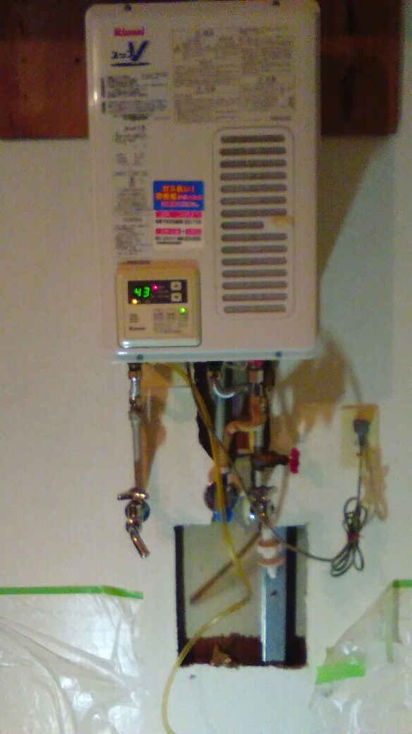と出ていました。その範囲の銅管補修をして壁を直しクロスを貼って給湯器を戻して完了です。大工さんクロス職人さん、お疲れ様でした。遅くまで、、、、( ;∀;)