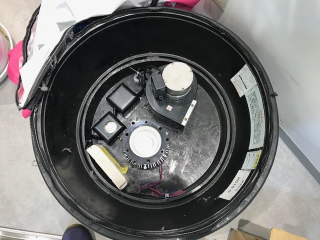 内容はエアー看板の土台にある機械部分の修理で、保護カバーを付けたり絶縁テープを巻いたりしました。