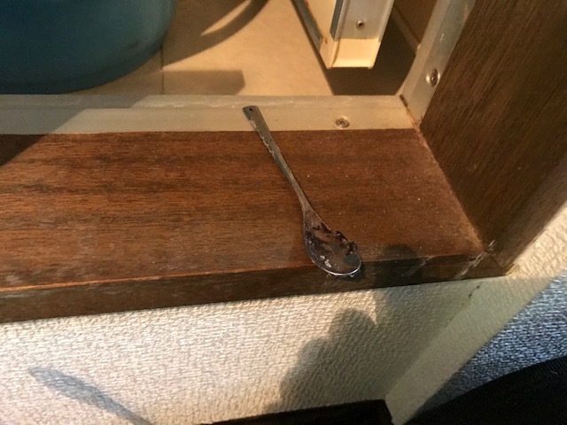すると、排水ホースの中にスプーンが挟まっており、そこにさらに食材の切れ端が詰まっていました。