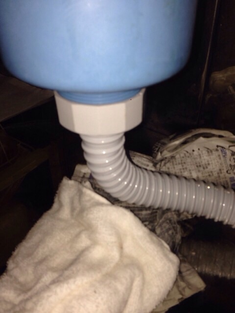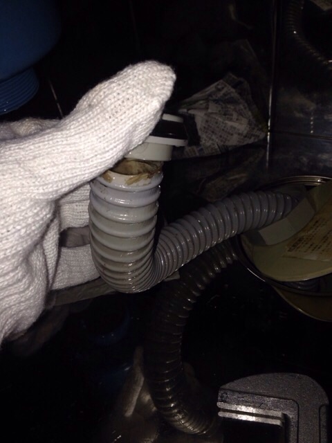 お伺いしてみると、排水ホースの隙間から水がだだ漏れしていて、よく見るとちぎれていました。