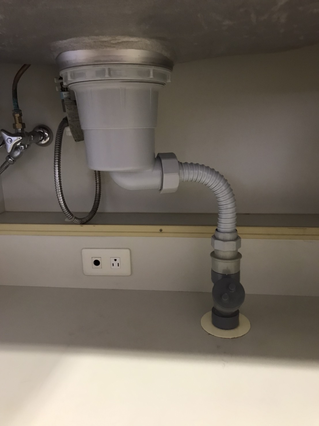 ディスポーザーを取り外し、用意していた普通の排水栓とホースを取り付けてスタンダードな状態へと復旧しました。