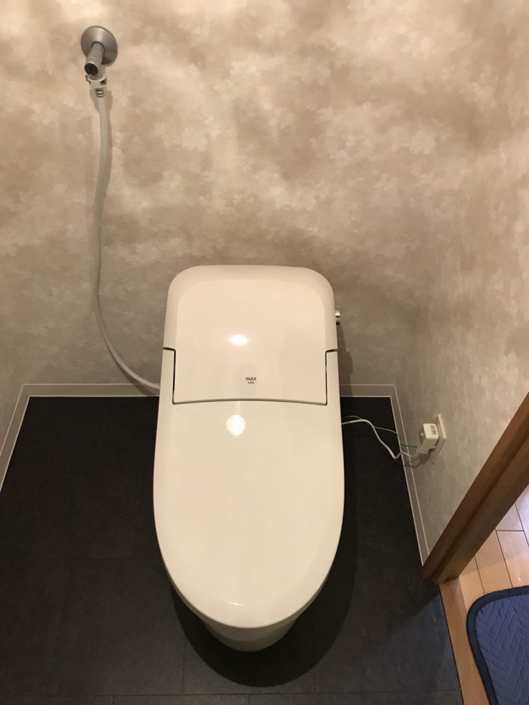 トイレ本体も、以前のものよりもコンパクトでスマートなタイプで取り換えたので、見栄えもすっきりしました。