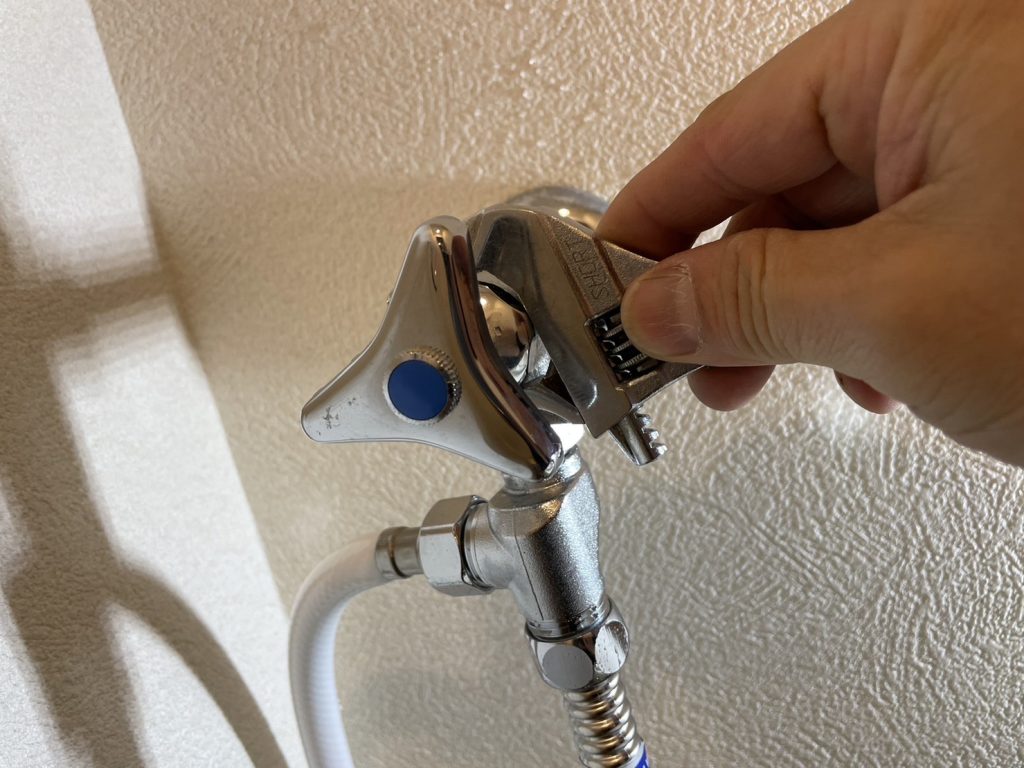 水漏れしているのはタンクに水が入る前までの止水栓部分で、ハンドルの付け根にあるナット部分でした。