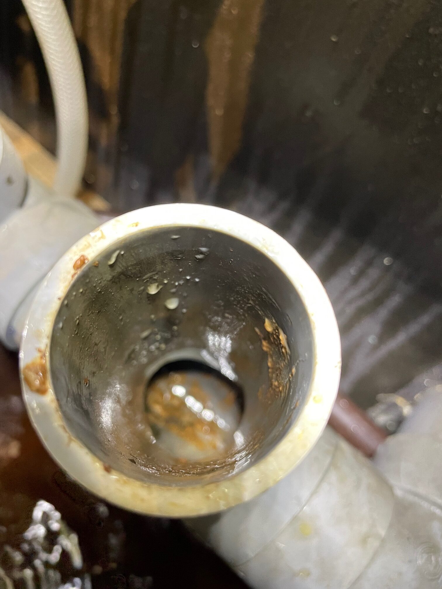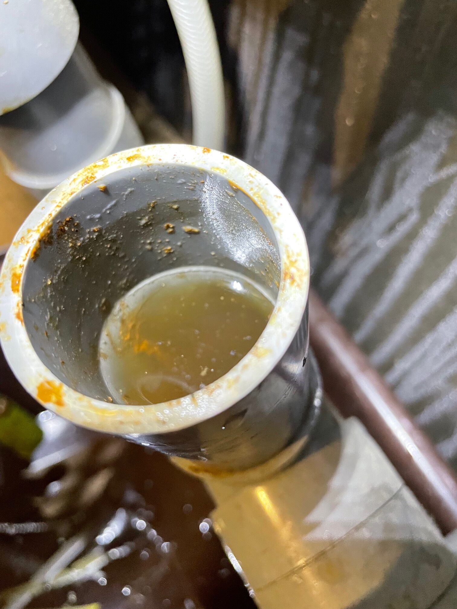 排水が詰まっており溢れてくる状態でした。