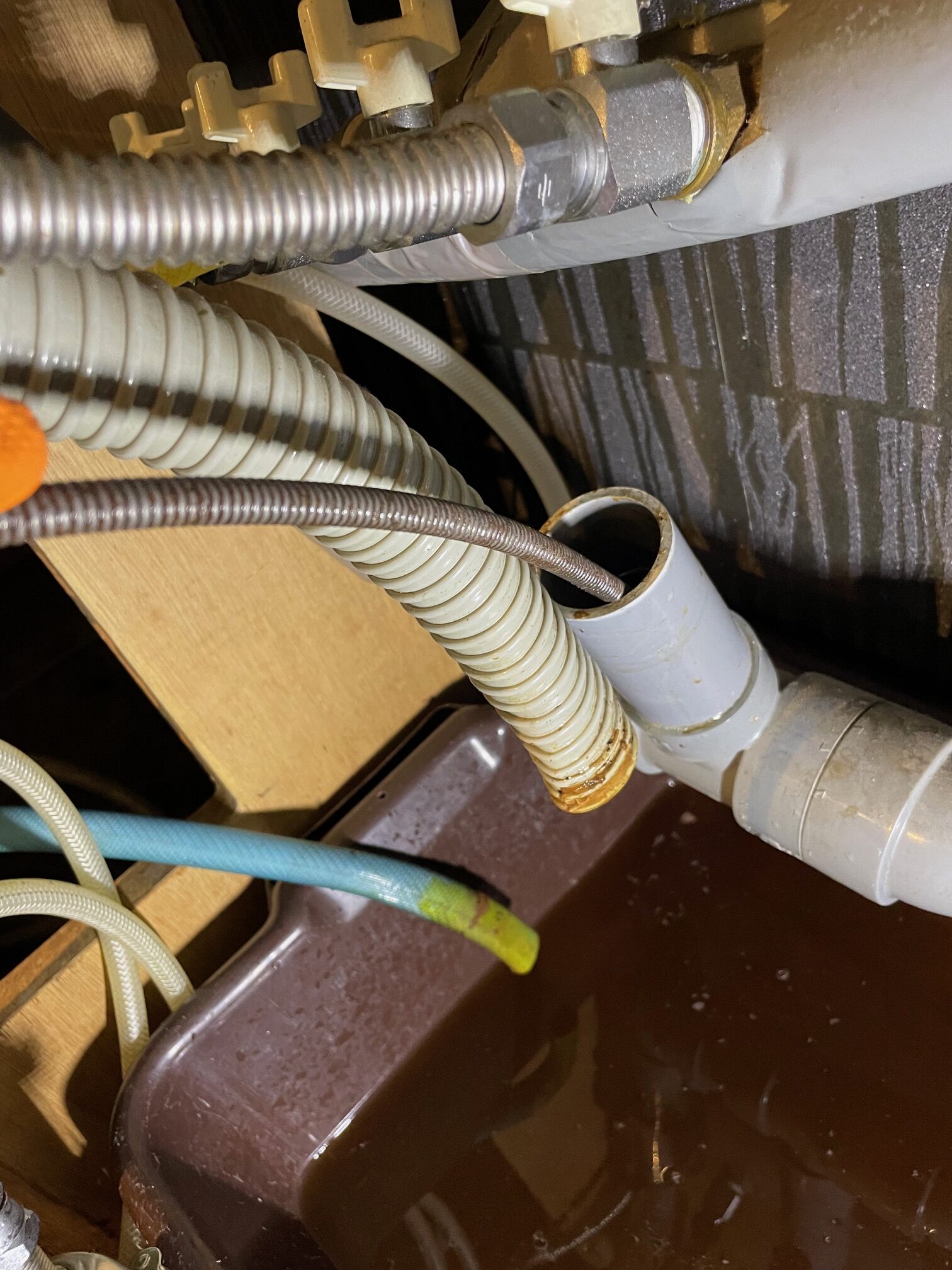 ドリンクバー下の排水管から水が溢れてきてしまうとのこと。
