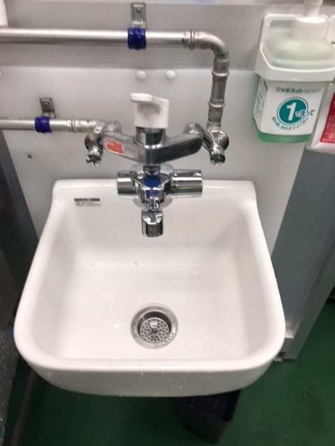 本日は、法人の方からの依頼で、厨房にある蛇口を自動水栓へと変更する作業を行いました。