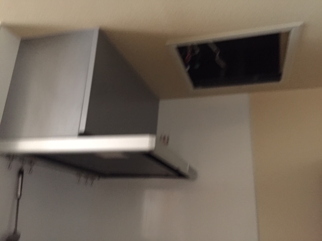 まずは応急処置として台所換気扇のコンセントを抜いてブレーカーが落ちないように処置しました。