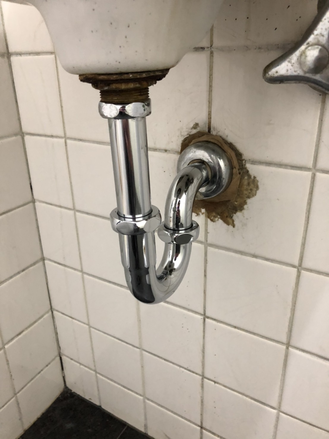 新しい排水パイプを用意し、同じように取付け直して症状は改善しました。
