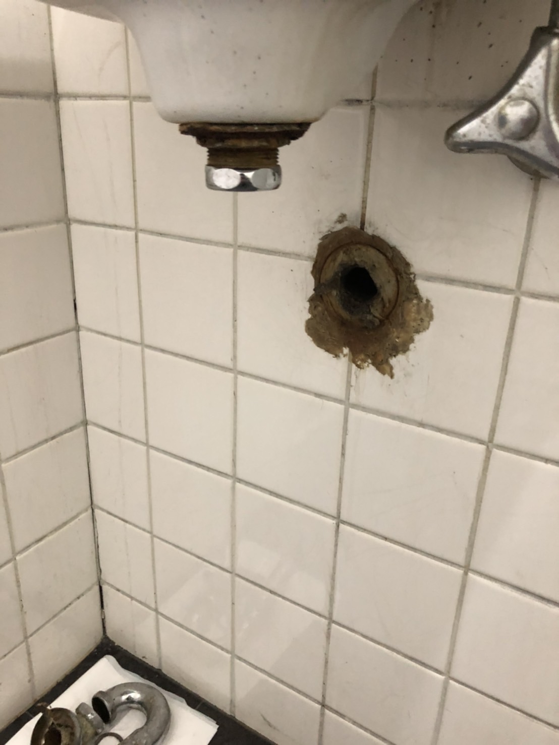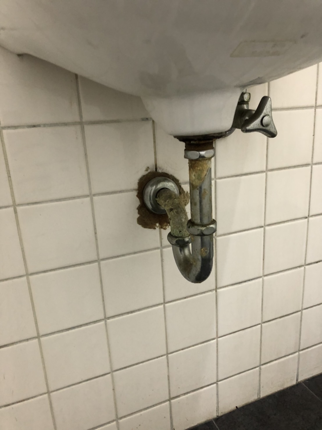 色々な会社が入っている雑居ビルで、共用の男子トイレ内の手洗い場での水漏れでした。