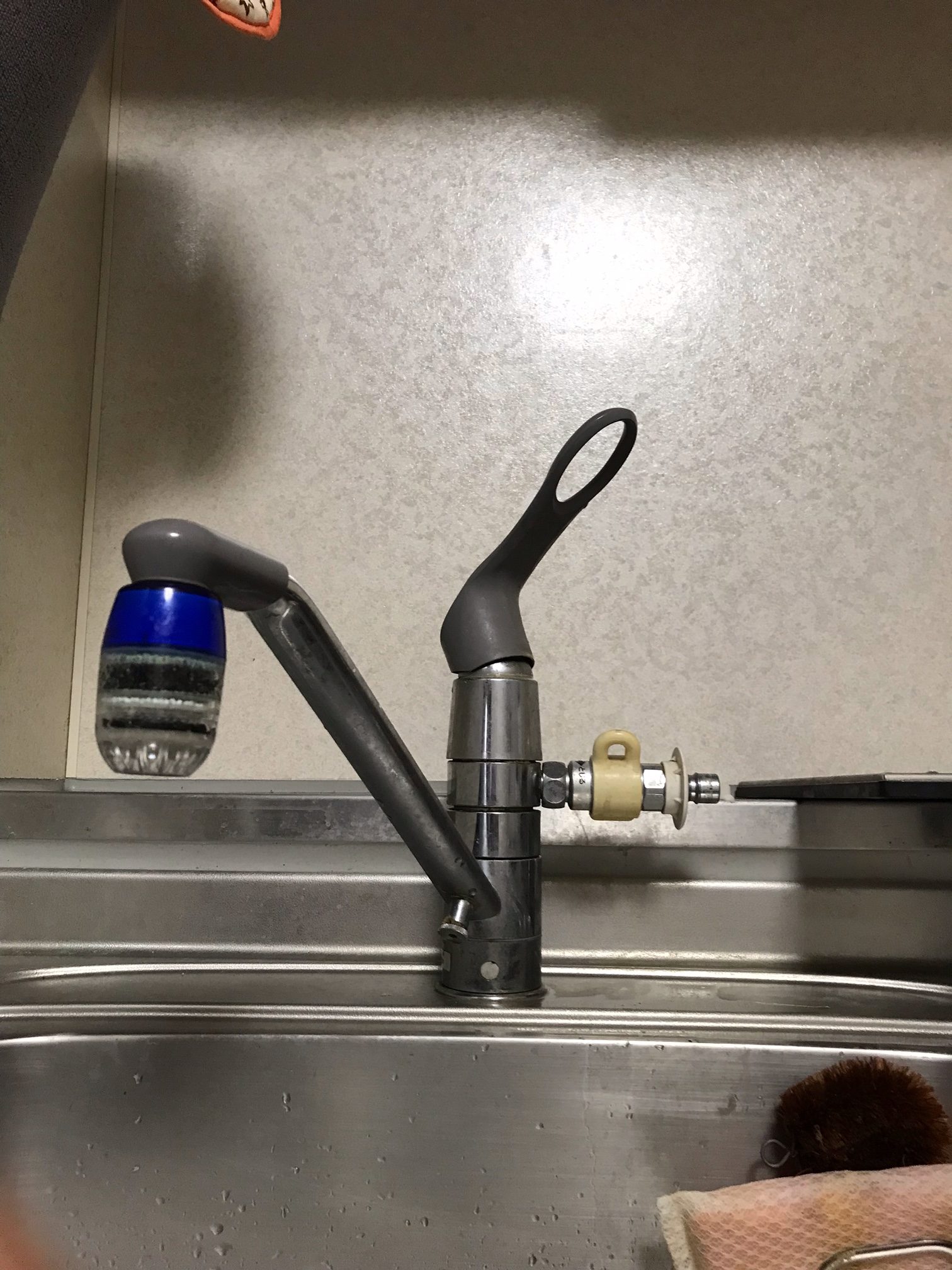 収納内にある蛇口と配管の繋ぎ目付近から水が滴り落ちていて、入居者様から連絡があったとのことです。