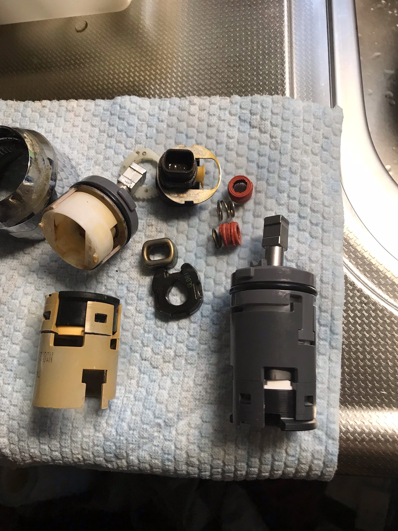 レバーの操作もスムーズで問題ないように見えますが、おそらくカートリッジが劣化して起きた症状と思われます。
