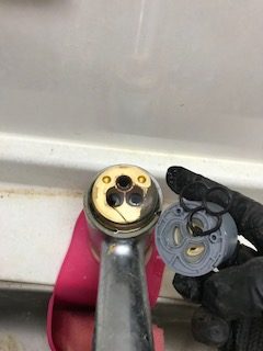 使用年数と台所蛇口を分解してみたところ中の部品交換で対応可能だと思いましたので部品交換対応させていただき水漏れを直すことが出来ました。
