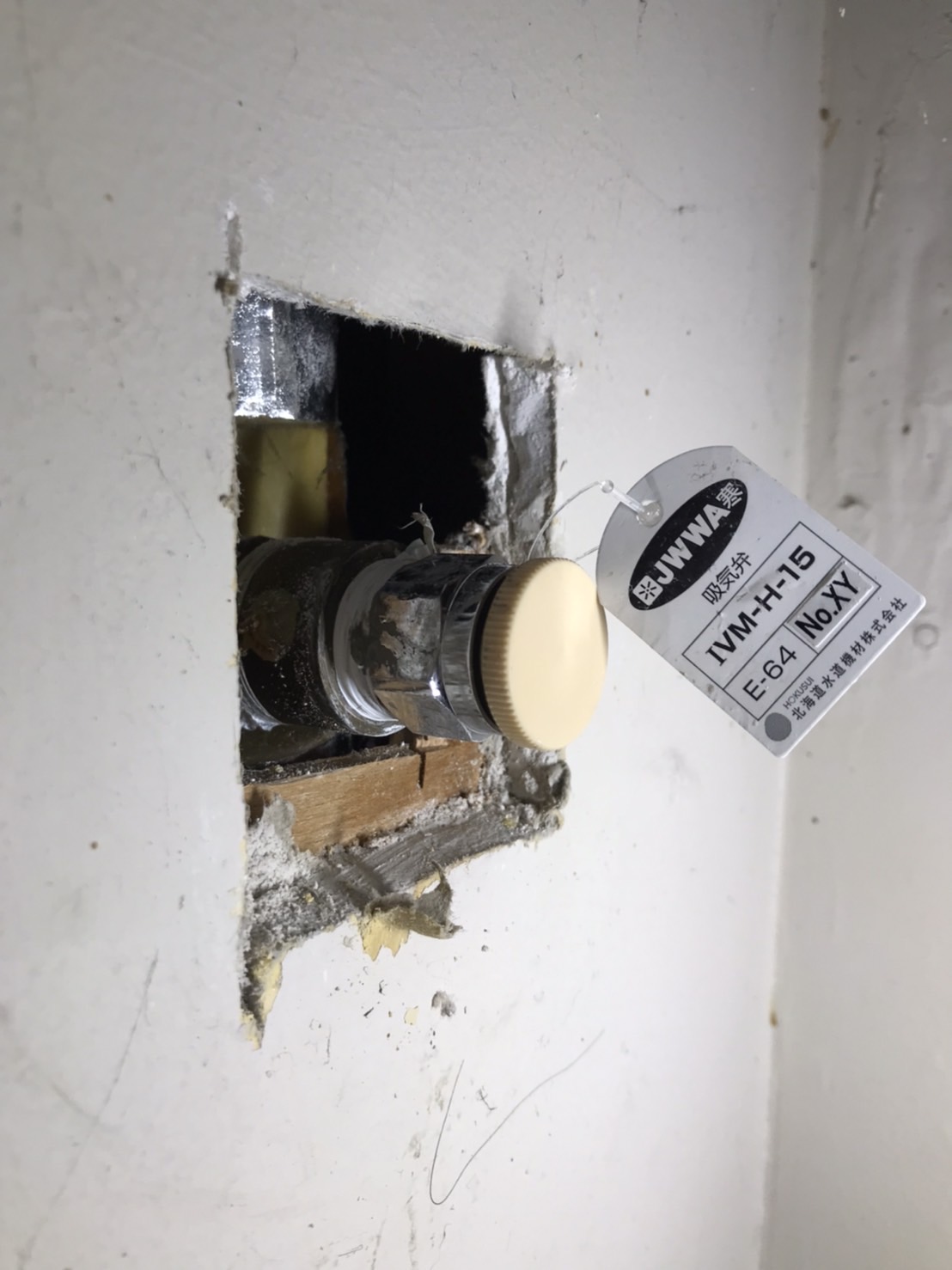 飛び出ている部品は吸気弁と呼ばれるもので、配管の中に空気を入れるための役割をしています。