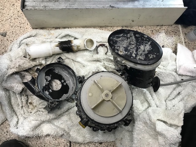 排水ポンプ内部のヘドロを取り除き、動力部分にも噛みこみがないかどうかも解体して確認しました。