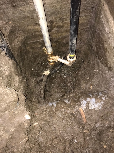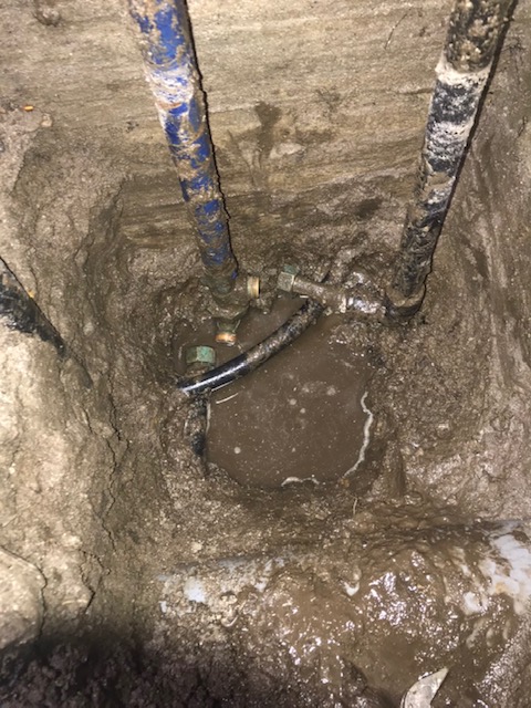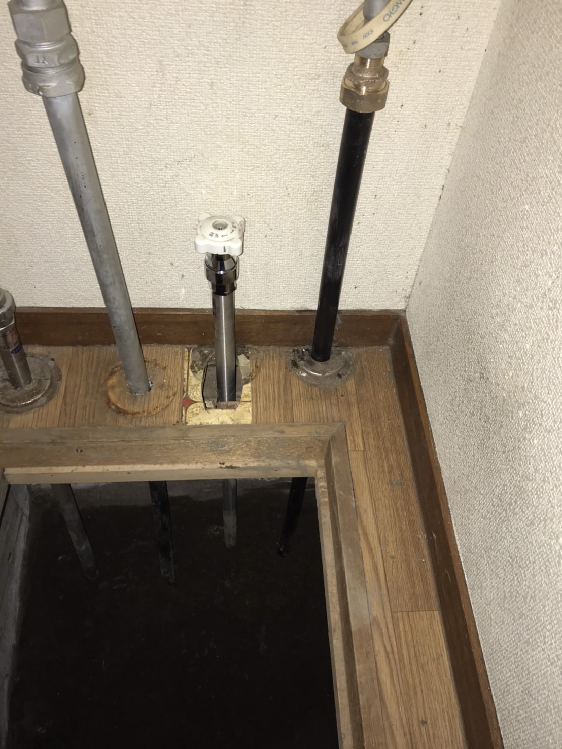 一階と二階に繋がる水抜き栓が二本並んでおり、その片方が床下で水漏れしてきている状態でした。