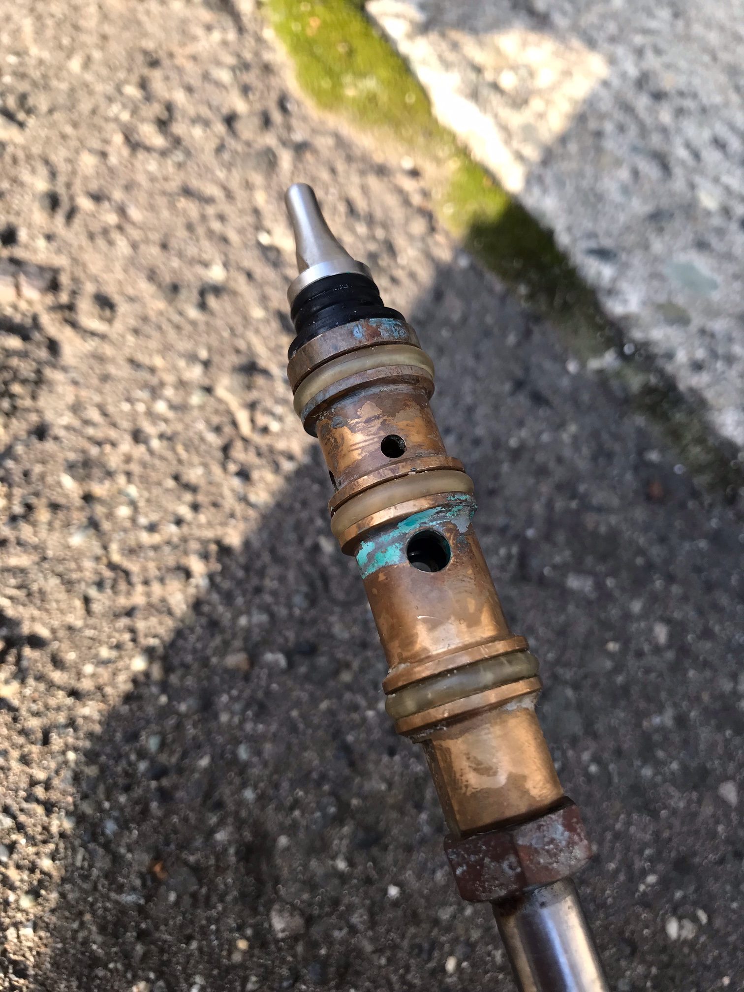 電動の駆動部を外し、そこからシャフトを引き抜いてピストンのパッキンを交換し症状は改善しました。