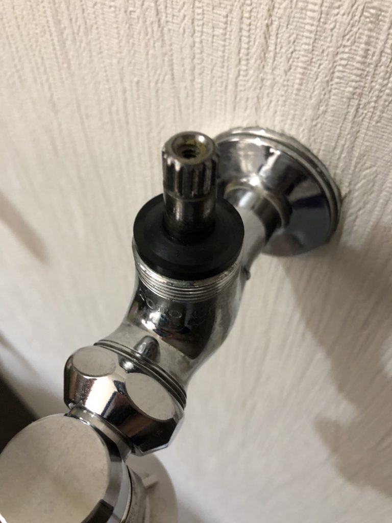 ハンドル下のナットに挟まっている三角パッキンが劣化していたので、こちらを新品と交換することで症状は改善しました。