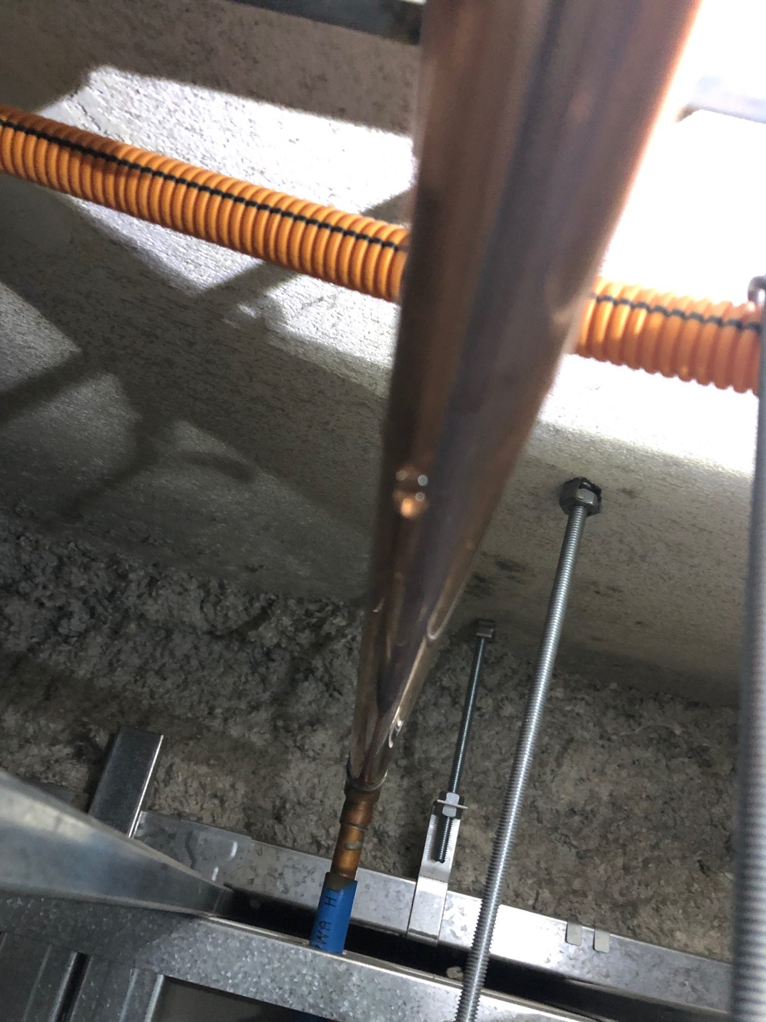 天井裏を調査してみると、配管の一部からピンホールしており、天井や壁に染み込んでいっていました。